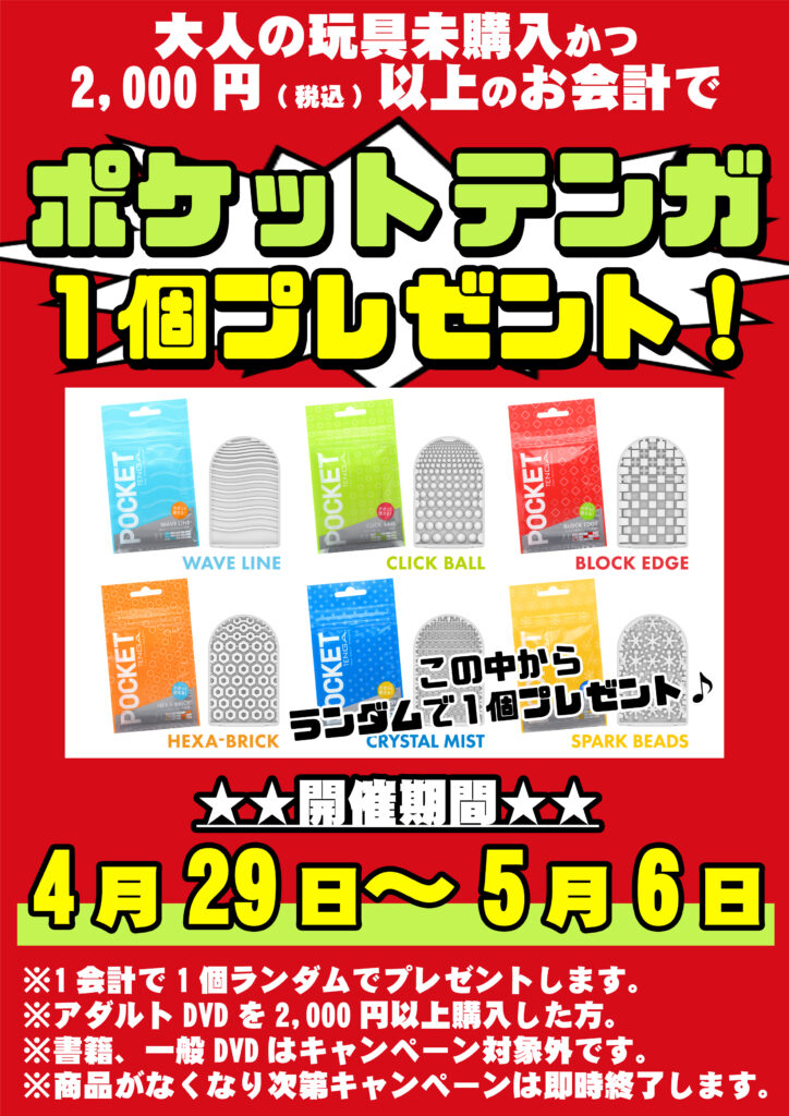 ポケットTENGAを1個プレゼント致します!